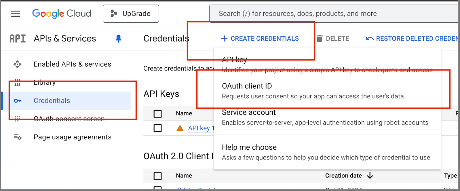 Go to Credentials > + Create Credentials > OAuth client ID
